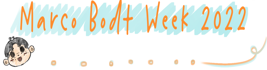 You are free to choose any of the prompts and even modify or mixing them to fit your ideas. You can also choose any form of art you want, it is not limited to fics and fanarts and you can publish them in any language. Let your creativity flow!You can tag your post with #MarcoBodtWeek2022 or tag us (@MarcoBodtWeek)!As for tagging, make sure to properly tag your works if it deals with any disturbing/triggering content and more especially if it’s nsfw.No harassment will be tolerated and any form of hate will result in an instant block and report.